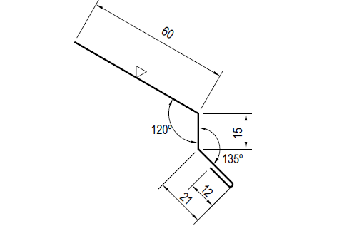 Rozwinięcie blachy o grubości 0,5 mm: 108x120 mm